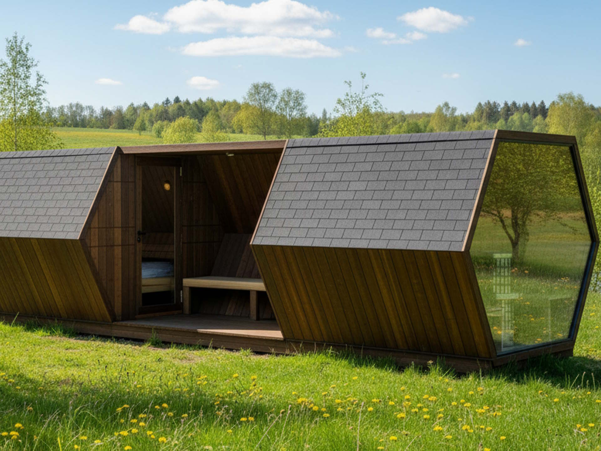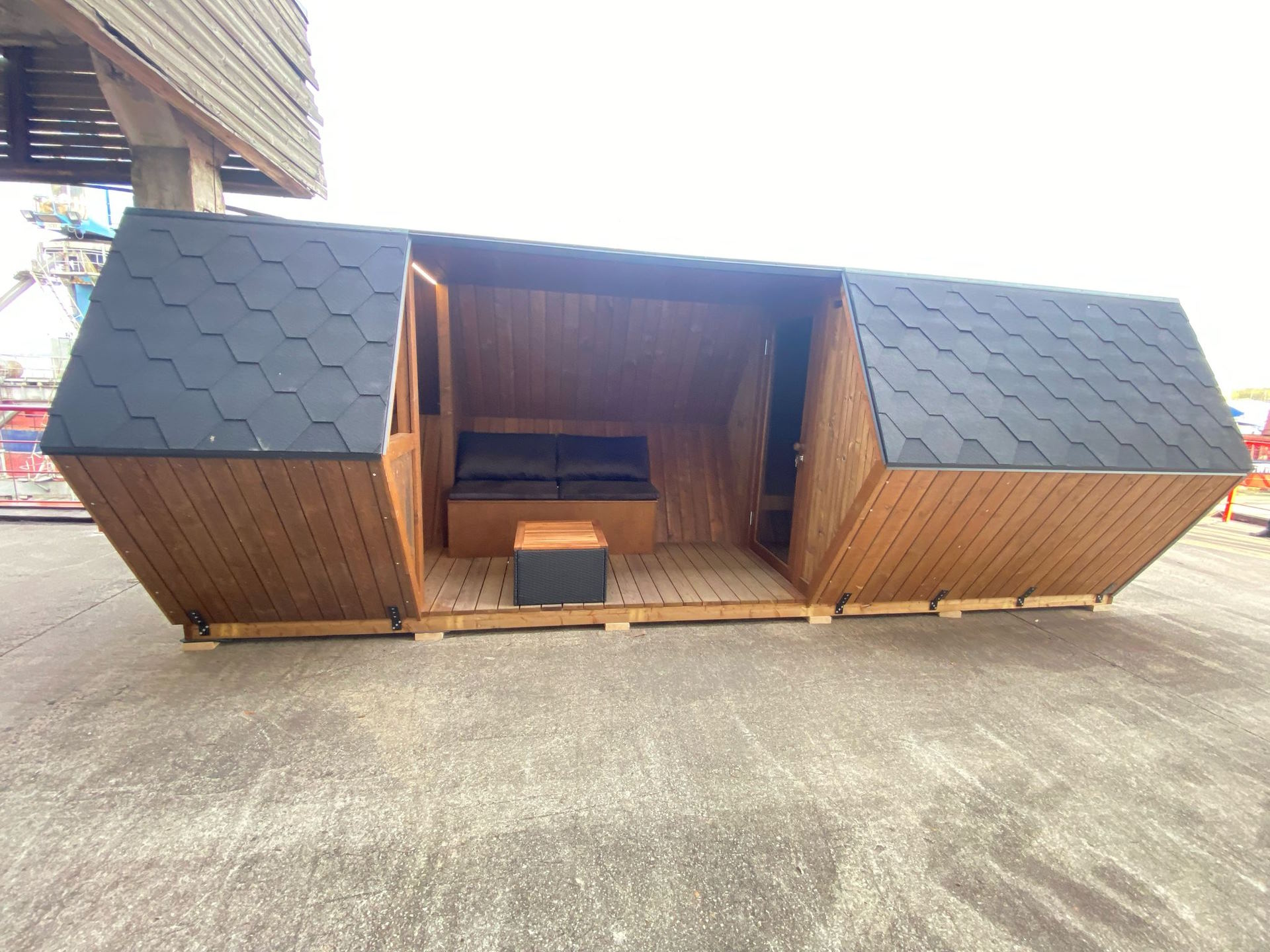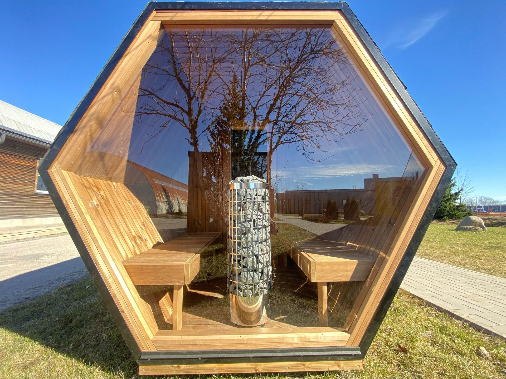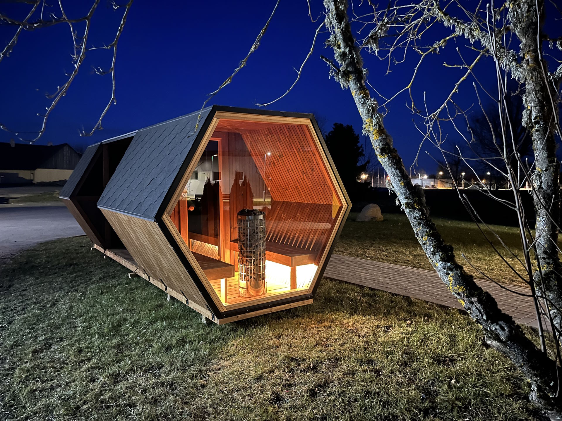 Kaali Sauna is designed for those who appreciate both smart design and practical functionality. Its distinctive hexagonal shape gives the building a contemporary architectural look while ensuring a well-planned interior that makes efficient use of space. The walls are built from strong 57 mm WXP panels, a durable 3-layer construction that provides excellent stability and reliable heat retention during every sauna session.