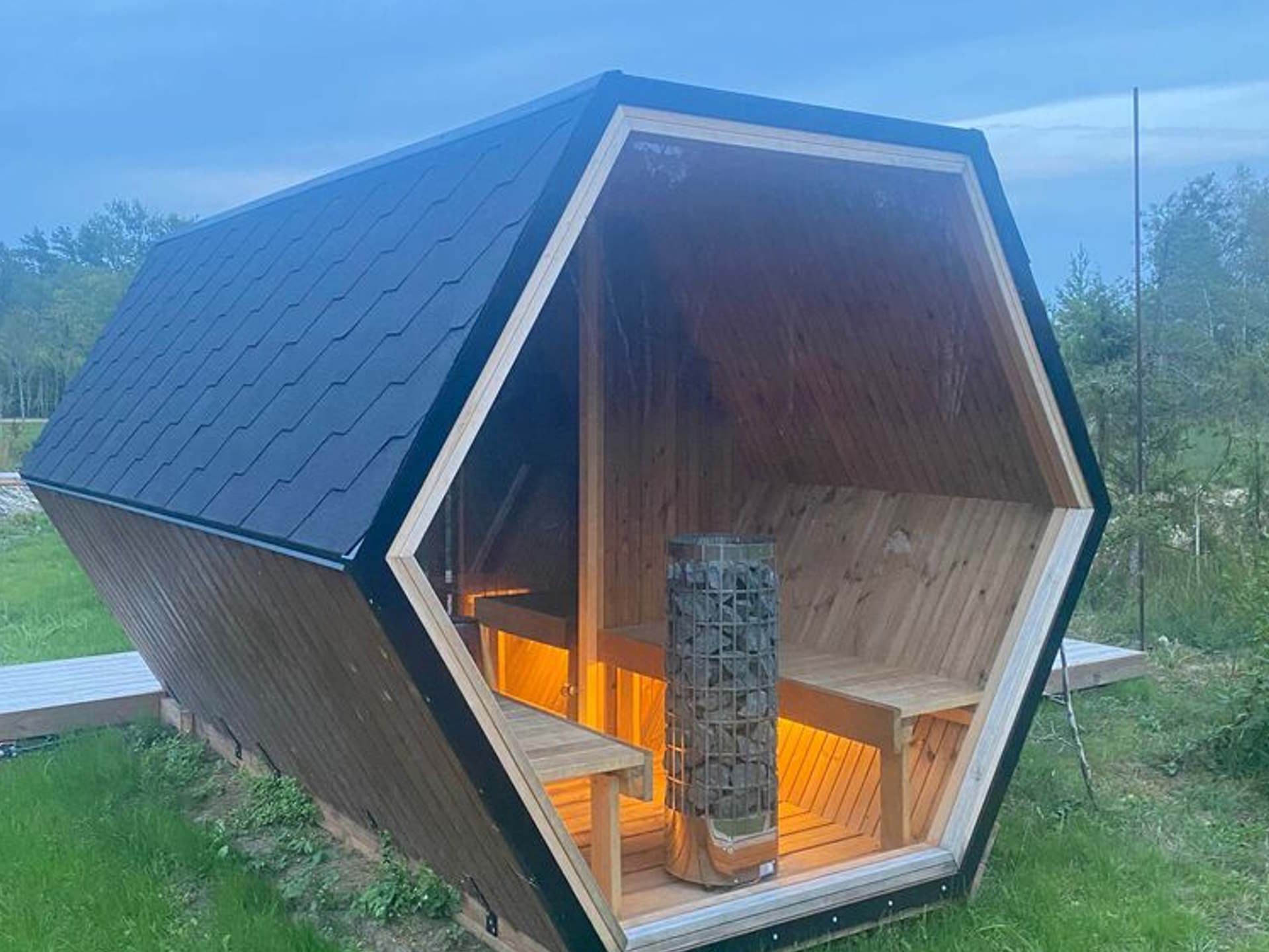 Kaali Sauna combines modern design with a unique hexagonal shape that stands out in any garden or holiday property. Built from strong 57 mm WXP panels, it offers excellent durability and heat retention. Available in multiple sizes, Kaali Sauna gives you a comfortable and stylish sauna experience all year round.