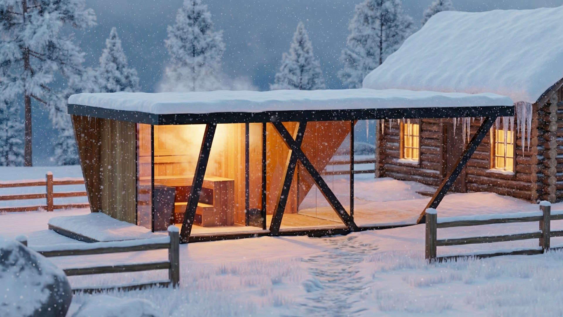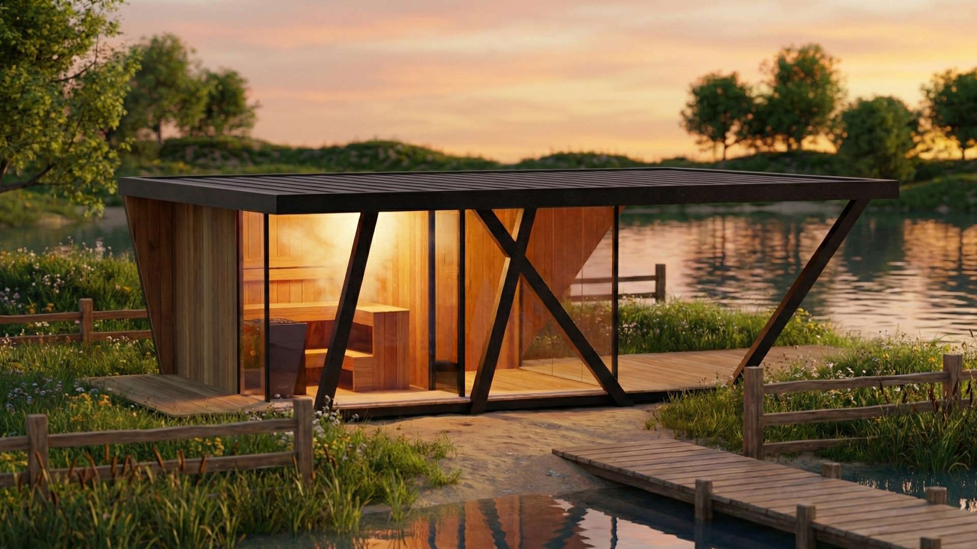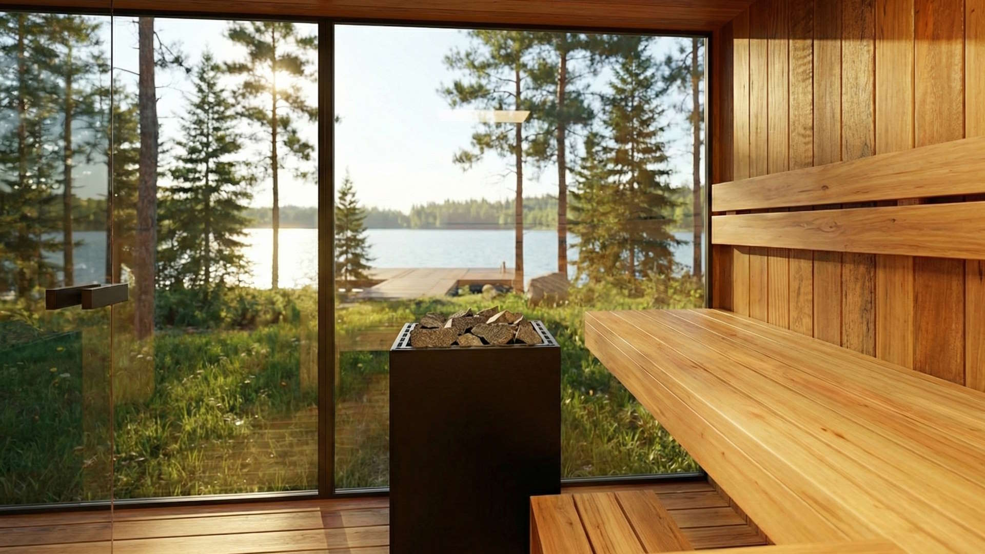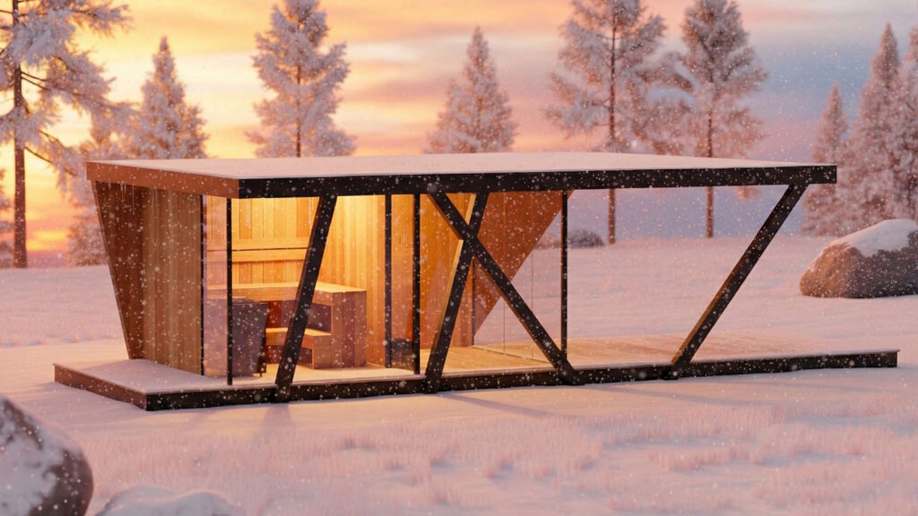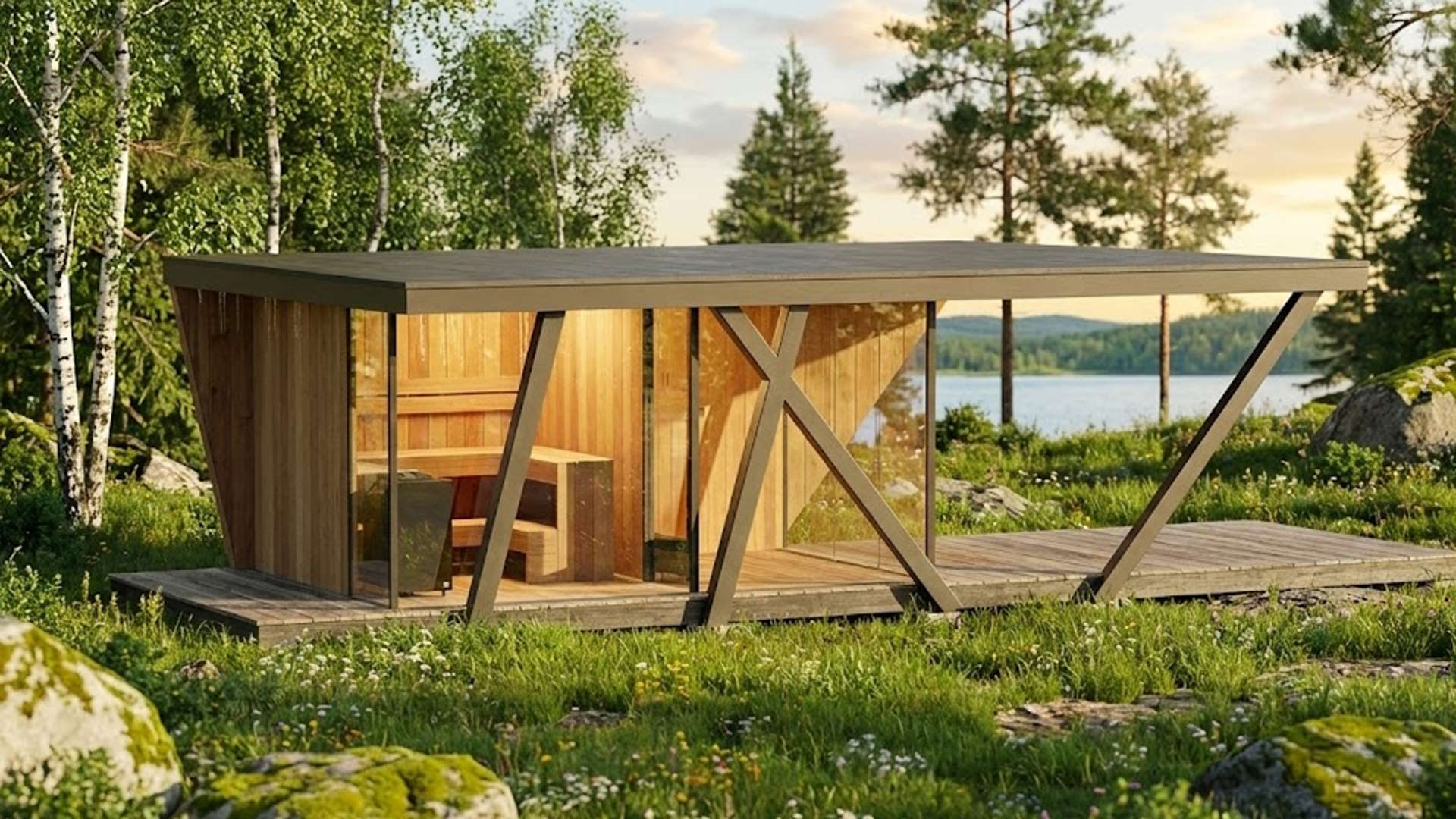 Modern and spacious sauna house offering a bright and comfortable sauna experience.