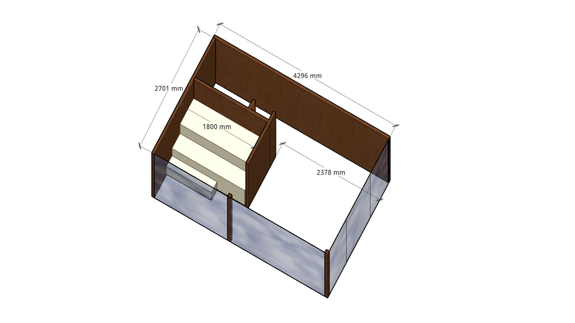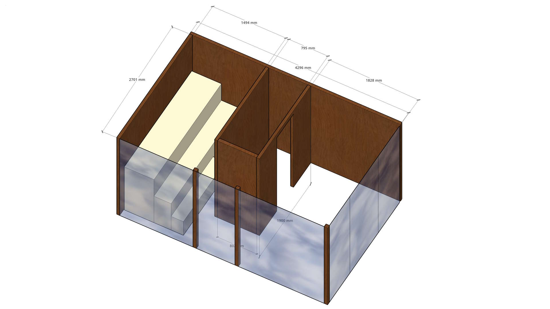 Interior space: 2800 × 4500 mm (12.6 m²)